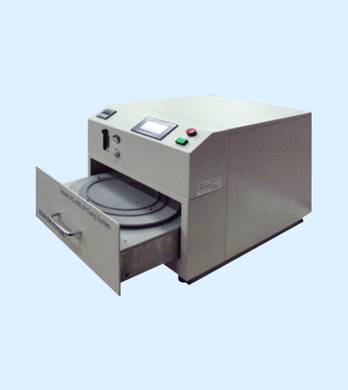 UVフィルム硬化装置は、半導体製造のウェハー加工(ダイシングやバックグラインド)工程において使用されるUV/紫外線硬化タイプのフィルムに、加工後、波長 365nmの紫外線(UV)を照射する装置です。